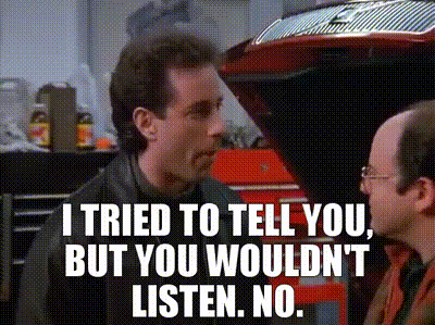 oh come on they would’ve gotten you a loaner!For sure. And I bet they would’ve been really excited to pay for my rental car for two weeks as well.